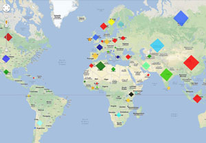 A Google maps page shows you an overview of all flags that are made by now for this project. A list of them you can see here.